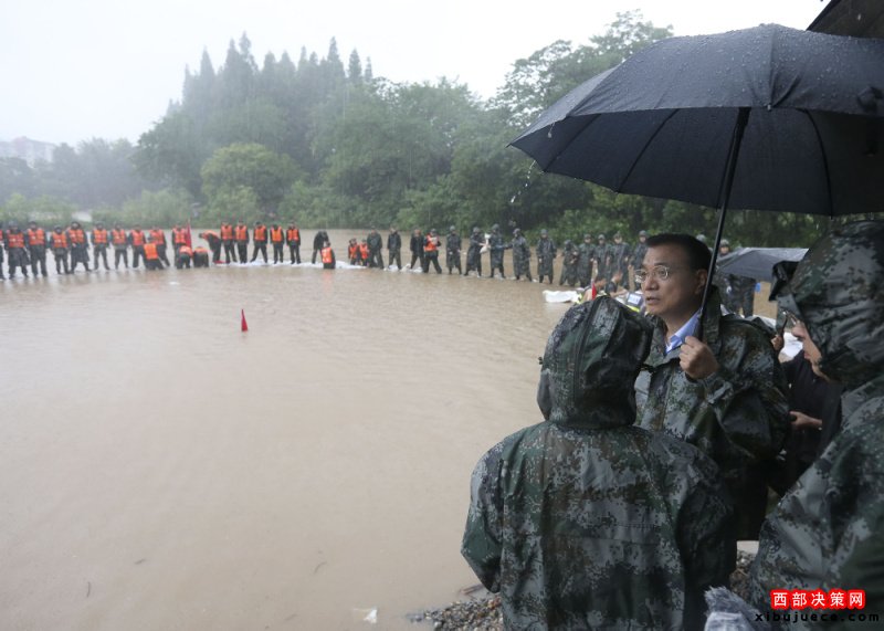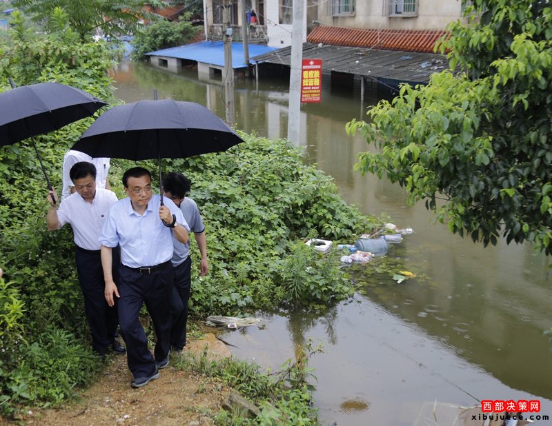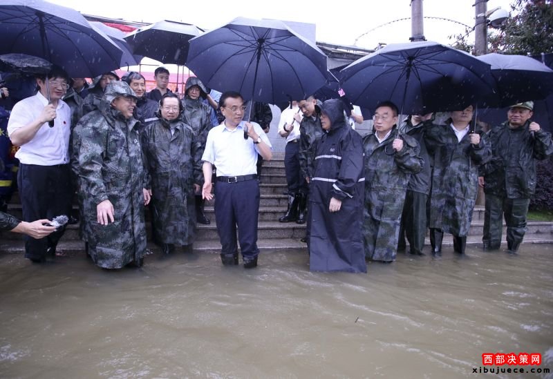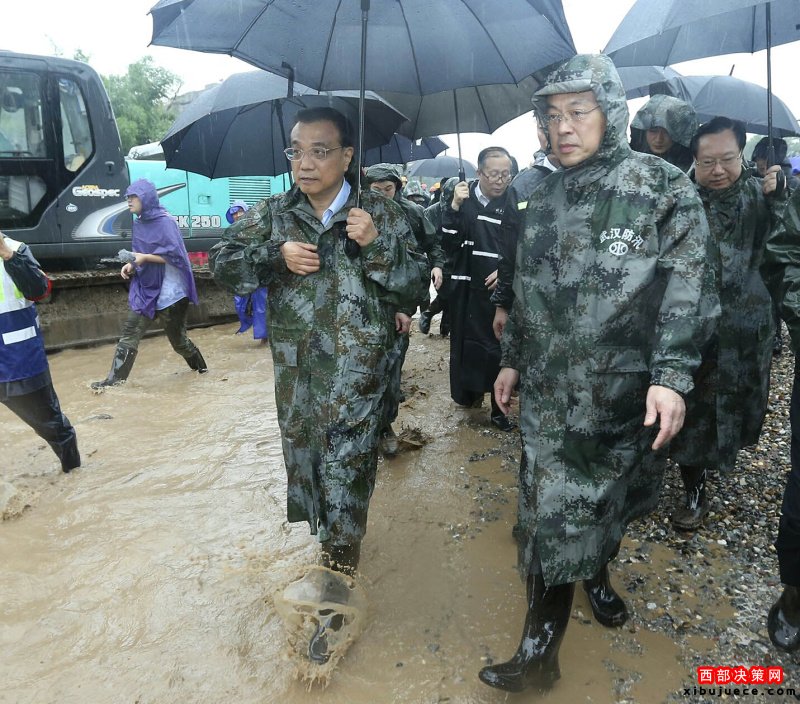 7月6日一早,李克強總理從湖南岳陽乘高鐵急赴湖北武漢,一路上大雨如注??偫硪幌萝嚕北记嗌絽^(qū)長江干堤倒口湖堤段管涌現(xiàn)場指揮搶險救災。