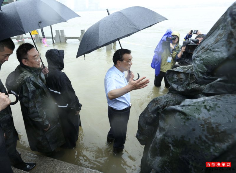 李克強冒大雨在武漢長江干堤現(xiàn)場指揮搶險救災