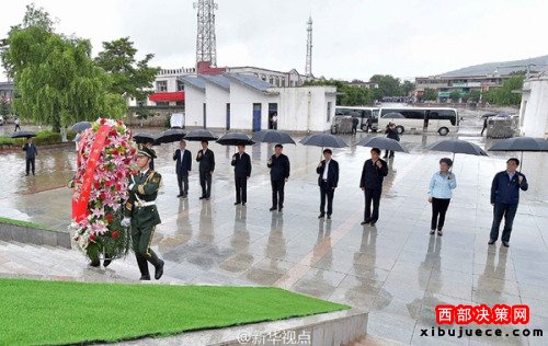 習(xí)近平考察寧夏首站到固原,冒雨向紅軍長征會師紀(jì)念碑敬獻(xiàn)花籃