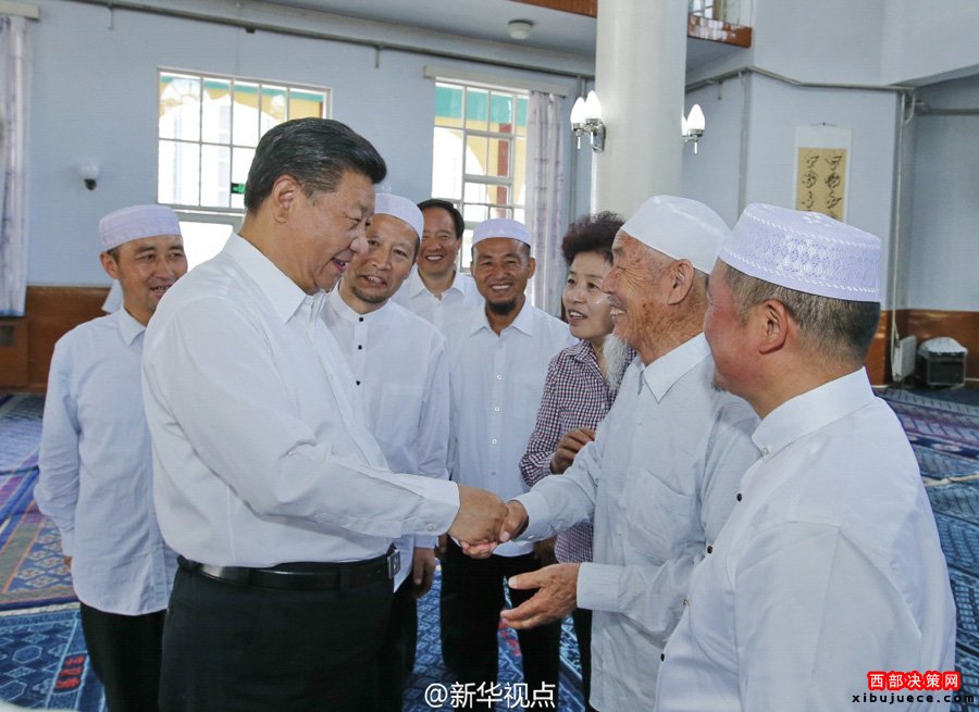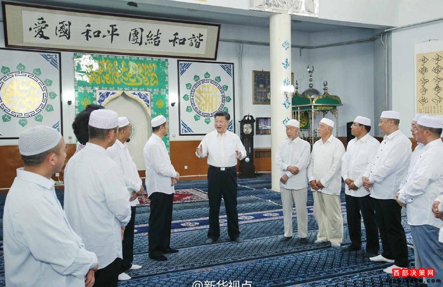 新華網(wǎng)北京7月19日電習(xí)近平總書記19日上午來到寧夏回族自治區(qū)銀川市新城清真寺了解宗教活動開展情況。在禮拜大殿,習(xí)近平與寧夏伊斯蘭教界人士親切交流,通過他們向廣大穆斯林群眾致以親切問候和良好祝愿。習(xí)近平說,我國的各民族和宗教是在5000多年的文明史中孕育發(fā)展起來的,只有落地生根才能生生不息。習(xí)近平希望大家繼續(xù)發(fā)揚(yáng)愛國愛教傳統(tǒng),在脫貧致富奔小康的道路上發(fā)揮積極作用。在場的伊斯蘭教界人士表示,將認(rèn)真貫徹落實(shí)全國宗教工作會議精神,既念好古蘭經(jīng),又念好致富經(jīng),為國家發(fā)展?fàn)I造和諧的環(huán)境。(文字:新華社記者霍小光,攝影:新華社記者鞠鵬、李濤據(jù)新華社“新華視點(diǎn)”微博報(bào)道)