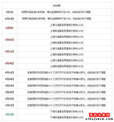 國(guó)家發(fā)改委歷次成品油價(jià)格調(diào)整匯總表。來源:隆眾石化網(wǎng)