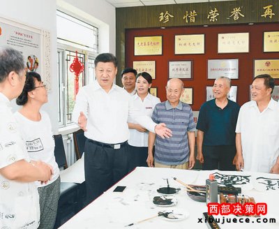 7月28日,中共中央總書記、國家主席、中央軍委主席習近平到河北唐山市調(diào)研考察。這是習近平在唐山市祥富里社區(qū)文化活動室勉勵正在進行書法繪畫的社區(qū)居民。