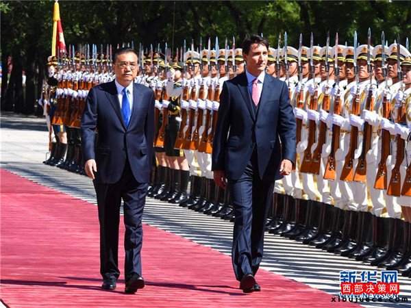 8月31日,國務(wù)院總理李克強在北京人民大會堂同來華進(jìn)行正式訪問并出席二十國集團(tuán)領(lǐng)導(dǎo)人杭州峰會的加拿大總理特魯多舉行會談。這是會談前,李克強在人民大會堂東門外廣場為特魯多舉行歡迎儀式。