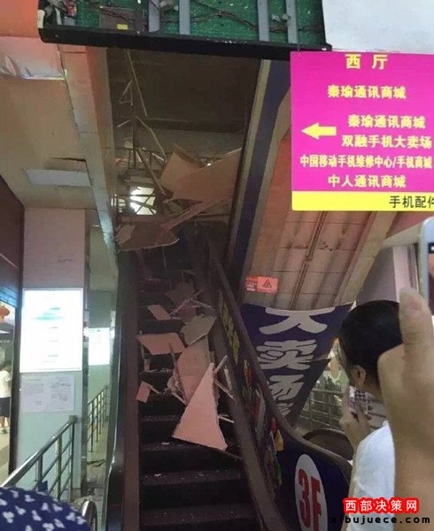 (通訊員 展?。?nbsp;今天中午1點(diǎn)左右,西安市西華門海星智能廣場四樓賣場電梯頂?shù)蹴斖蝗幻撀洹I虘魝冋f,房頂是木質(zhì)結(jié)構(gòu),坍塌毫無預(yù)兆。事故所幸暫時(shí)沒有人員受傷!