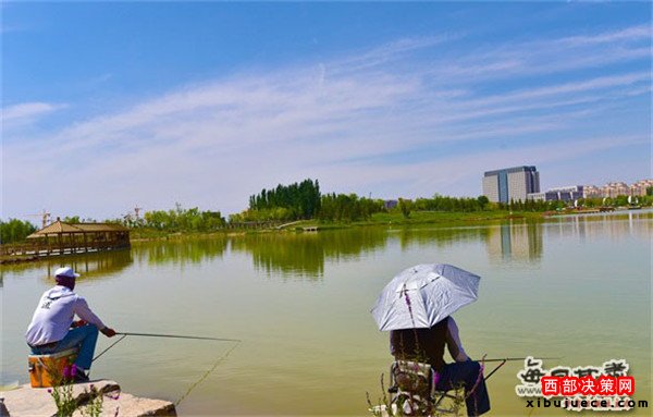 9月4日,“文博會(huì)網(wǎng)絡(luò)宣傳周”采訪團(tuán)75家媒體近百名記者一行走進(jìn)蘭州新區(qū)時(shí),就被碧波蕩漾的2號(hào)湖濱區(qū)所吸引,湖邊盛開著紅的、黃的、紫的鮮花,湖里隱約可見各種彩色的錦鯉,游人或愜意地在湖邊垂釣,或聚集在觀景臺(tái)欣賞音樂噴泉,或悠然自得地泛舟湖上。