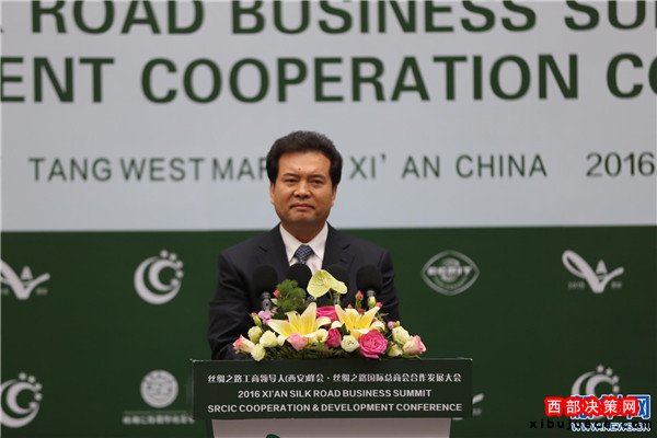 絲綢之路工商領導人(西安)峰會·絲綢之路國際總會商合作發(fā)展大會開幕,絲綢之路國際總商會主席呂建中主持大會。