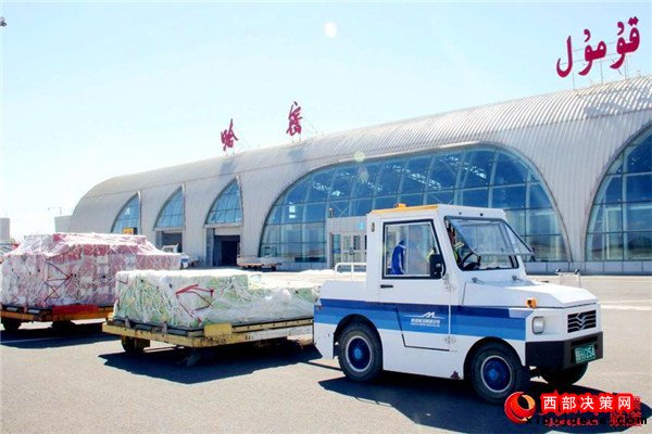 新疆哈密機場,打包好的大棗和貢瓜正在等候裝運。