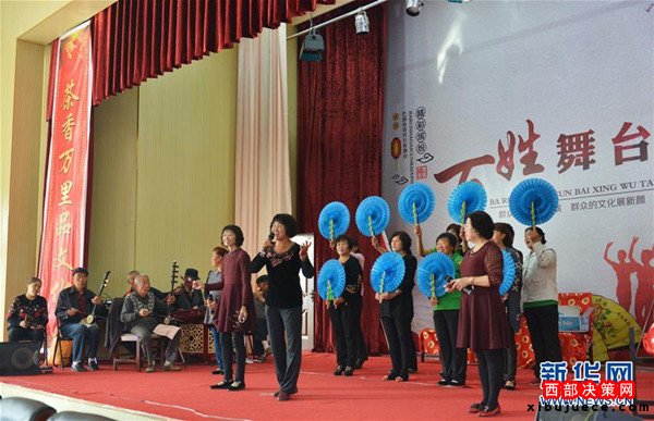 準(zhǔn)格爾旗巴潤哈岱村村民在村里的文化活動(dòng)室表演自導(dǎo)自演的節(jié)目(9月24日攝)。
