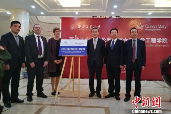 圖為西北工業(yè)大學(xué)倫敦瑪麗女王大學(xué)工程學(xué)院在西安揭牌。