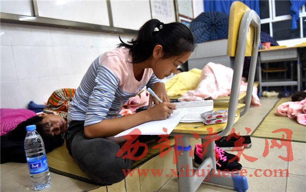 10月18日,在欽州市的臨時(shí)安置所內(nèi),高一學(xué)生廖凌在寫(xiě)作業(yè)。
