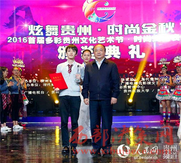 10月22日下午,2016首屆多彩貴州文化藝術節(jié)“炫舞貴州?時尚金秋”——時尚文化表演賽頒獎典禮在貴州廣播電視臺拉開帷幕。貴州省委常委、省委宣傳部部長張廣智,貴州省政協(xié)黨組副書記、副主席陳海峰等省領導出席并為獲獎者頒獎。