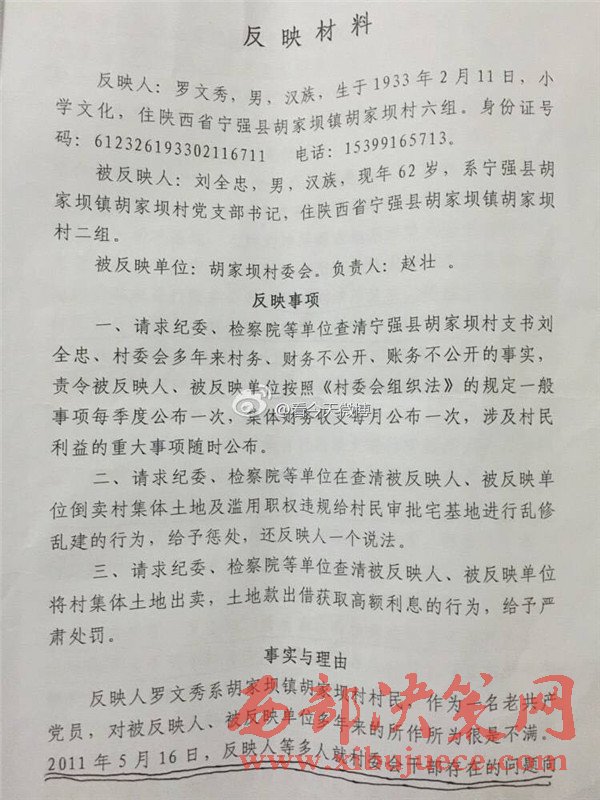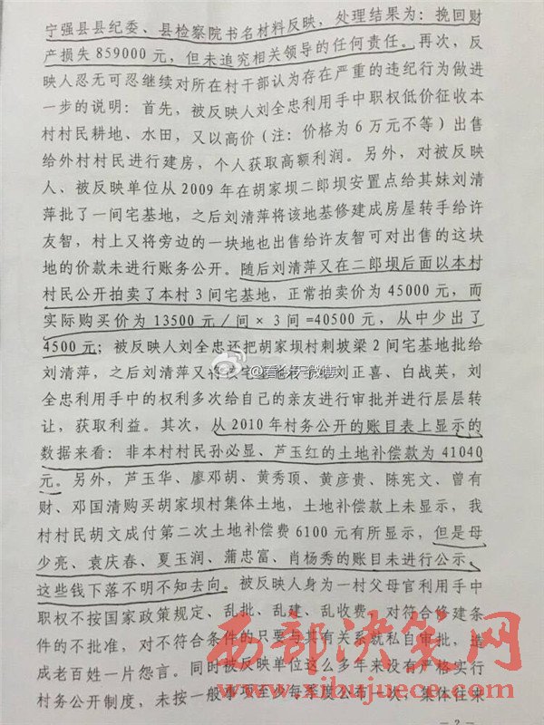 西部決策網(wǎng)訊 近日,有網(wǎng)友微博爆料,陜西省漢中市寧強(qiáng)縣胡家壩鎮(zhèn)胡家壩村,村干部劉全忠利用惠民政策,套取國(guó)家大量資金。對(duì)于國(guó)家扶貧項(xiàng)目,巧立名目、貪污、侵占村民利益。濫用職權(quán)違規(guī)審批宅基地,倒賣村集體土地,并將村上千萬余元出借他人賺取利息,且村務(wù)不公開、賬務(wù)弄虛作假、嚴(yán)重違紀(jì)行為。
