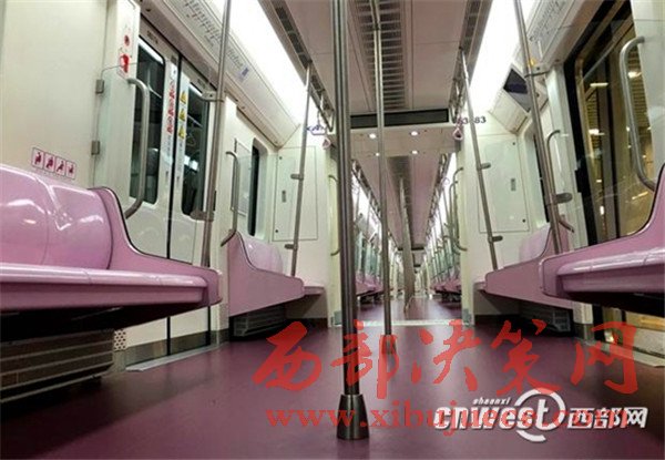三號(hào)線電客車車廂,以粉紫色為基調(diào),座椅、扶手、電客車地面都是“萌萌噠”的粉紫色,車廂里洋溢著濃濃的浪漫。