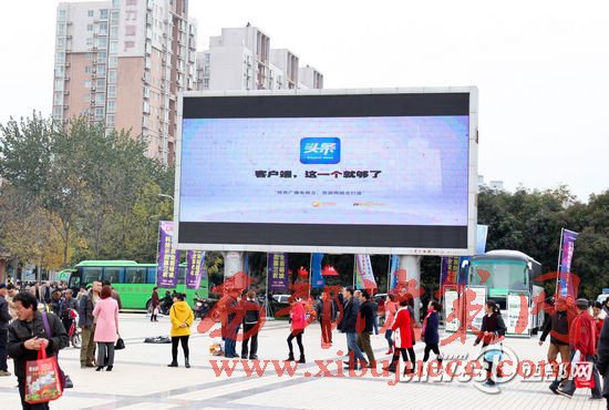 在農(nóng)高會(huì)的戶(hù)外大屏上,陜西頭條客戶(hù)端為群眾展示通過(guò)手機(jī)看農(nóng)高會(huì)的便捷方式