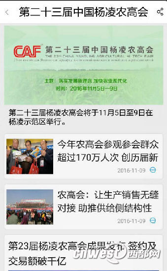 今年,陜西頭條客戶(hù)端與西部網(wǎng)PC端、微博、微信等形成整體宣傳矩陣。聯(lián)合第23屆楊凌農(nóng)高會(huì)籌委會(huì)新聞中心開(kāi)通上線“第23屆楊凌農(nóng)高會(huì)網(wǎng)上新聞中心”,建成農(nóng)高會(huì)新聞匯集和媒體服務(wù)平臺(tái)。通過(guò)手機(jī)將最權(quán)威、最準(zhǔn)確的“農(nóng)高會(huì)”新聞資訊傳遞到每一個(gè)人身邊。