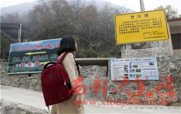 昨日上午,華商報記者來到王莽街道小峪河村涉事農(nóng)家樂,該農(nóng)家樂仍在正常營業(yè)。在農(nóng)家樂門口,立著一個很顯眼的黃色警示牌,是長安區(qū)防汛抗旱指揮部辦公室設置的,上面寫著2015年8月3日突發(fā)山洪造成九人死亡的事情,并提醒群眾遠離河道,雨天不得在溝口逗留,不得在此亂搭亂建,該牌子。在警示牌下面,有一條用水泥砌成的水溝,從路邊一直通往山上,華商報記者注意到,在山坡上有水向下流出。