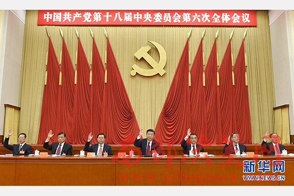 中國共產(chǎn)黨第十八屆中央委員會第六次全體會議,于2016年10月24日至27日在北京舉行。這是習近平、李克強、張德江、俞正聲、劉云山、王岐山、張高麗等在主席臺上。新華社記者李學仁攝