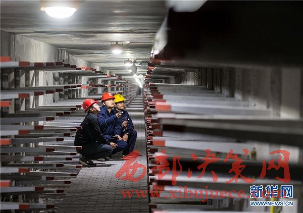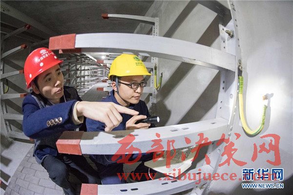 11月24日,解放碑地下環(huán)形電力隧道的一段支線電力隧道內(nèi),兩名國(guó)網(wǎng)重慶市區(qū)供電公司的技術(shù)人員(右一、右二)在對(duì)預(yù)留的商業(yè)用戶接入隧道的電力設(shè)施設(shè)備進(jìn)行竣工驗(yàn)收。當(dāng)日,經(jīng)過3年多的緊張建設(shè),重慶地下環(huán)形“電力高速路”——解放碑地下環(huán)形電力隧道工程順利通過竣工驗(yàn)收,并正式投入運(yùn)行。解放碑環(huán)形電力隧道總長(zhǎng)2408米,其中1198米的干線電力隧道已經(jīng)成功接入解放碑商圈及周邊地區(qū)的4個(gè)110千伏變電站形成環(huán)線,支線電力隧道1210米也開始陸續(xù)接入用戶。據(jù)介紹,作為重慶市重點(diǎn)工程,2013年7月開工建設(shè)的解放碑地下環(huán)形電力隧道按照滿足未來20年電力需求設(shè)計(jì),隧道高2.8米、寬2.4米,投入運(yùn)行后將解決重慶渝中半島和重慶最繁華的解放碑商業(yè)區(qū)配電設(shè)施老化、無法擴(kuò)建等問題,使解放碑商圈供電負(fù)荷承載能力得到極大加強(qiáng)。