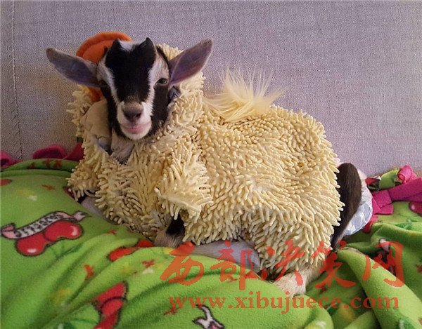 小鴨子服不僅為小羊的可愛加了分,還緩解了Polly的焦慮癥?,F(xiàn)在只要Polly的焦慮癥再發(fā)作,琳恩就會給它穿上小鴨子服,Polly就會馬上睡著。