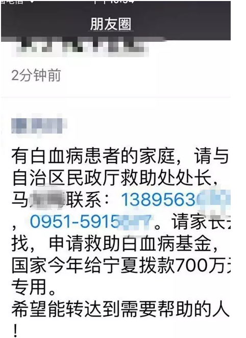 民政部門證實“寧夏有700萬白血病基金”不實 寧夏人別再傳播這類