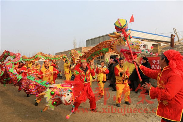 12月5日,婚禮上,農(nóng)牧民群眾正在舞龍表演。