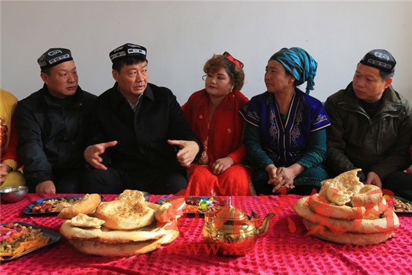 在巴哈爾古麗·吾斯曼家中,董斌與“親戚”一家促膝長(zhǎng)談,“心連心”交流,詳細(xì)了解今年家庭收入情況以及今后的生產(chǎn)計(jì)劃,并囑咐孩子們要多學(xué)習(xí)生產(chǎn)生活技能,勇于承擔(dān)起家庭脫貧致富的擔(dān)子,照顧好家庭和家人。董斌說(shuō),“現(xiàn)在黨的惠民政策這么好,一定要靠自己的雙手勤勞致富,努力過(guò)上好日子。同時(shí)發(fā)展好庭院經(jīng)濟(jì),在庭院內(nèi)多種植蔬菜、果樹(shù),建好雞舍、羊圈,多發(fā)展家禽和牛羊,多渠道的增收致富。”巴哈爾古麗·吾斯曼一家表示,要常懷感恩之心,感謝黨的惠民好政策,感謝親人的關(guān)心和幫助,帶頭搞好民族團(tuán)結(jié),勤勞務(wù)實(shí),爭(zhēng)取早日脫貧致富。