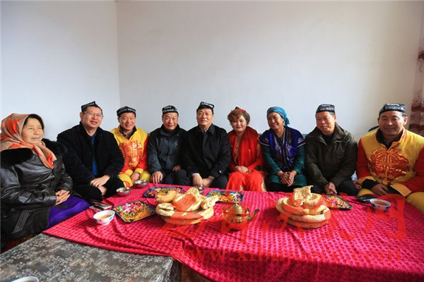 “我‘親戚’的女兒結(jié)婚,這是大喜事!”一大早,博湖縣委書(shū)記董斌就來(lái)到巴哈爾古麗·吾斯曼家賀喜?;槎Y上,董斌向“親戚” 巴哈爾古麗·吾斯曼及新人送來(lái)了祝福,送上禮金,并且表示婚禮辦得熱鬧喜慶,各族群眾互相走動(dòng),互相拜訪,像一家人一樣其樂(lè)融融。