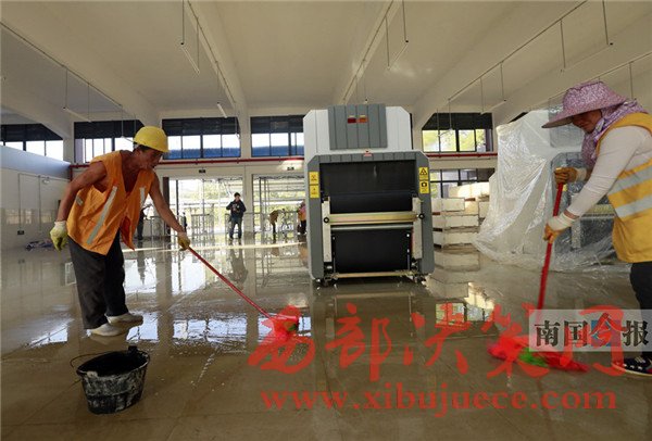 下月5日,全國鐵路調(diào)圖,將有7對普速列車改停柳江站。作為柳州市區(qū)范圍內(nèi)的第二個客運火車站,柳江站的改造項目已進入尾聲,安檢掃描儀也搬進了候車室。圖為工人昨日在車站進行地面清潔,為迎接四方旅客做好準備。