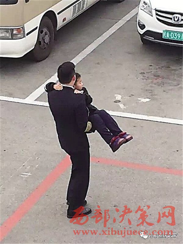 機(jī)長抱小男孩下飛機(jī)圖片刷爆朋友圈