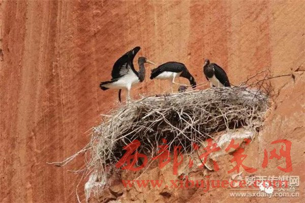 抬頭仰望,懸崖峭壁之上,國家一級保護動物黑鸛筑巢在上邊。黑鸛是一種遷徙鳥,性孤獨,成鳥體長1一1.2米,在淺水處和沼澤地活動,主要以鯽魚、泥鰍等小魚類為食,也食蛙等小爬行類。其珍貴可比朱鹮,可想而知,這里生態(tài)小環(huán)境是多么的純潔和幽美。