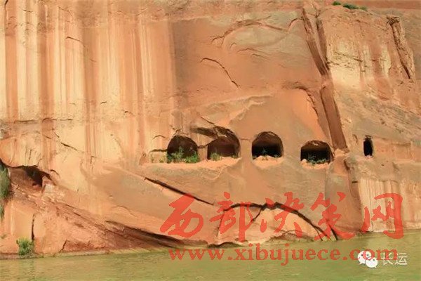 閆寨子,遠眺是快巨大的紅石頭,巋巍屹立,綠水環(huán)繞,可謂龍洲“赤壁”,離地面百米以上建有窯洞,上下三層,三十多間。