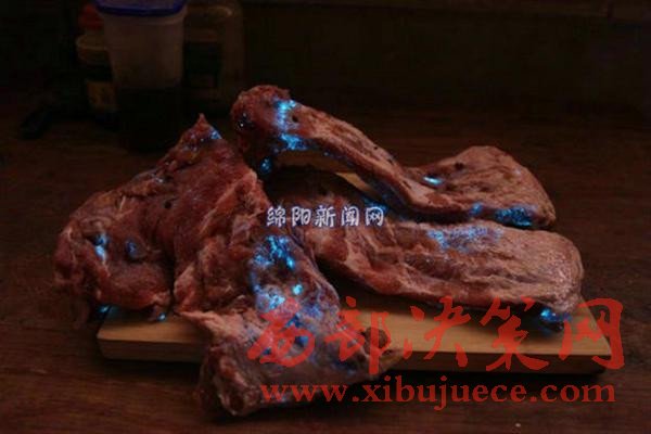 "太恐怖了,豬肉竟然在發(fā)光。"26日,綿陽市民蘇女士向記者反映稱,其在市場上購買的排骨竟然在夜里發(fā)出幽藍(lán)的光,這讓她很是驚恐。