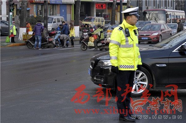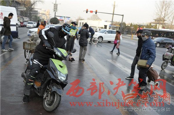 站在路口指揮疏導(dǎo)的交警碑林大隊文藝路中隊中隊長馮侃說,受氣溫降低影響,清晨時分路面易結(jié)冰,過往車輛務(wù)必注意路況,尤其要保持車距,“同時也需要提醒行人和非機(jī)動車,通過路口時務(wù)必觀察后通行,以免發(fā)生意外。”
