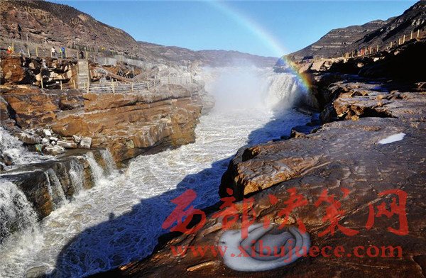 “千里黃河一壺收,旋流洪波濤如山”,到過壺口瀑布的人,都會(huì)被它驚濤拍岸、吞云吐霧的恢宏氣勢所震撼。豐水期的瀑布固然雄渾豪壯,而冬天的壺口也另有一番風(fēng)韻。冰掛晶瑩剔透,造型各異,與瀑布中飛舞的彩虹交相輝映,吸引了眾多游客。