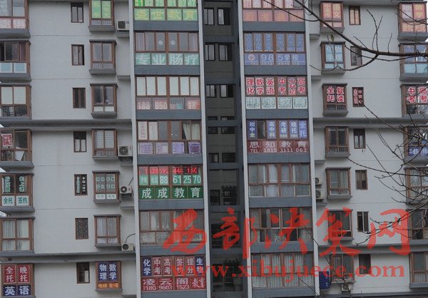 不過,自搬進來的第一天起,她感覺置身商業(yè)圈。樓道里,到處都是補習班的招生廣告。最令彭女士頭痛的是,學生最多的暑假,一天有五六次被敲門。