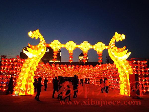 “永寧大集•大吉永寧” 新春花燈美食節(jié)于正月初一在中華回鄉(xiāng)文化園隆重啟幕,該活動(dòng)將持續(xù)到元宵節(jié),為期十五天。作為銀川首屆綜合大型春節(jié)民俗活動(dòng),“永寧大集•大吉永寧” 新春花燈美食節(jié)以“花燈+美食+民俗+社火+互動(dòng)”的形式,為廣大市民提供一場(chǎng)豐富多彩的“中國(guó)年大餐”, 本次新春活動(dòng)比以往新年燈會(huì)更新穎豐富,花燈采取傳統(tǒng)自貢花燈與現(xiàn)代光影科技相結(jié)合的形式,為市民打造了一片流光溢彩的花燈海洋。