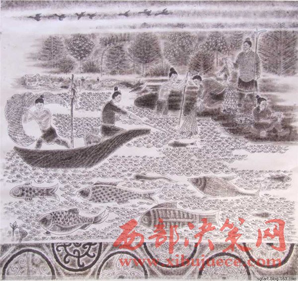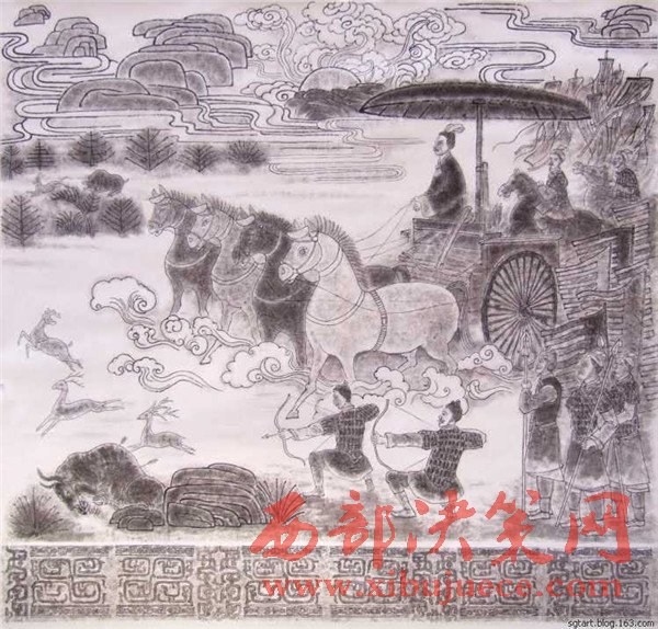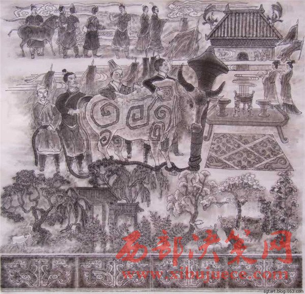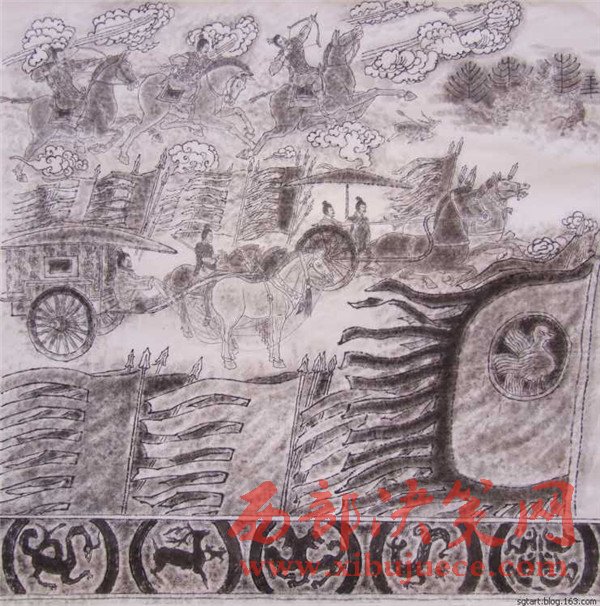 曹老經(jīng)過深思熟慮后1989年作出第一幅石鼓畫像,但他并不滿意。石鼓文的博大精深、源遠流長豈能是他輕易能描繪得出來的!他覺得自己還沒有吃準石鼓文的深邃含義。他明白:淺薄自滿是藝術(shù)的致命傷,能對自己自省和不滿的人,才會創(chuàng)作出能經(jīng)得起時間和歷史檢驗的藝術(shù)佳作。曹老痛下心撕了又畫,兩易其稿后,心里還不踏實,他必須尋找“最為挑剔的眼睛”。于是,他帶著十幅畫作,趕赴京城,讓石鼓專家鑒定審核。果不其然,專家們給他指出了一些問題:畫的時間不對,人物衣著不符合朝代特征。曹老虛心聽取了專家的意見,他返回寶雞,廢棄了原稿,重新考證人物的歷史特征,生活細節(jié)的一點一滴。他為了能精確地描繪先秦時期的人物和服飾,甚至每一件物件、器皿、圖案,他借來了秦兵馬俑博物館的圖像和資料,依據(jù)兵馬俑中人物的衣著打扮,紋飾車馬,2000年之后,第三次拿起筆重新準確地描繪出了十面石鼓中的眾多人物、眾多民俗風(fēng)情。為了讓《石鼓文圖》經(jīng)受更嚴格的“審批”,曹老并沒有急于發(fā)表,而是連續(xù)奔波了幾年,直到2007年終于定稿與世人見面。