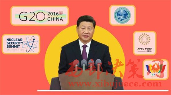 2016年,習(xí)近平出席了五場國際峰會(聯(lián)合國核安全峰會、上合組織峰會、二十國集團(tuán)峰會、金磚峰會、亞太經(jīng)合組織峰會),為世界安全、為全球治理,闡述“中國方案”,貢獻(xiàn)“中國智慧”。