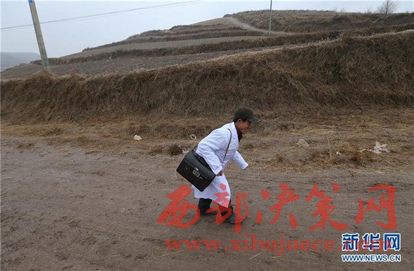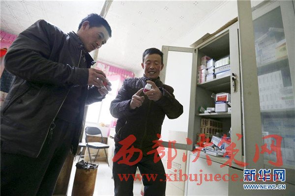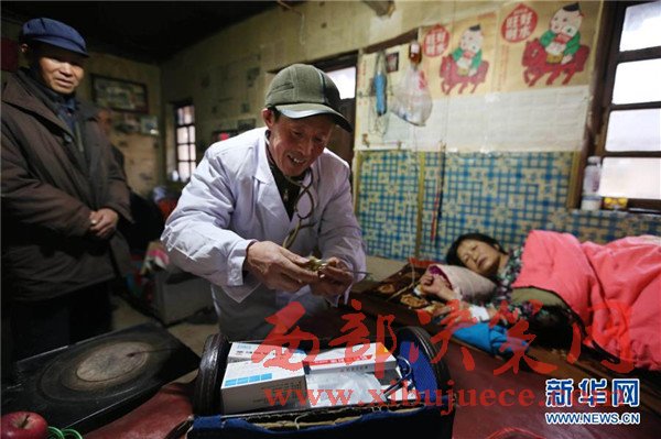 村醫(yī)牟天明在村民家中為患者診療(2月6日攝)。大年初十,在寧夏固原市西吉縣新?tīng)I(yíng)鄉(xiāng)二府營(yíng)村泥濘的村道上,身高不足一米六的村醫(yī)牟天明背著醫(yī)療箱,一瘸一拐地前往離家5公里的患病村民家中。春節(jié)以來(lái),這已是他第18次出診。年近六旬的牟天明在上小學(xué)時(shí)腿部突發(fā)疾病,由于當(dāng)時(shí)鄉(xiāng)村醫(yī)療條件有限,落下了終身殘疾。他沒(méi)有失去對(duì)生活的信心,從初中開(kāi)始就自學(xué)醫(yī)學(xué)知識(shí),1977年高中畢業(yè)后,牟天明回村做了一名赤腳醫(yī)生,這一干就是40年。 40年來(lái),牟天明行醫(yī)始終站在患者的角度,讓村民跑最少的路、花最少的錢(qián)解除病痛。不論白天黑夜、風(fēng)霜雨雪,只要村民有需要,他就會(huì)背上醫(yī)療箱出診,足跡遍及二府營(yíng)村的每一戶人家,被村民稱為村里的健康“守護(hù)神”。