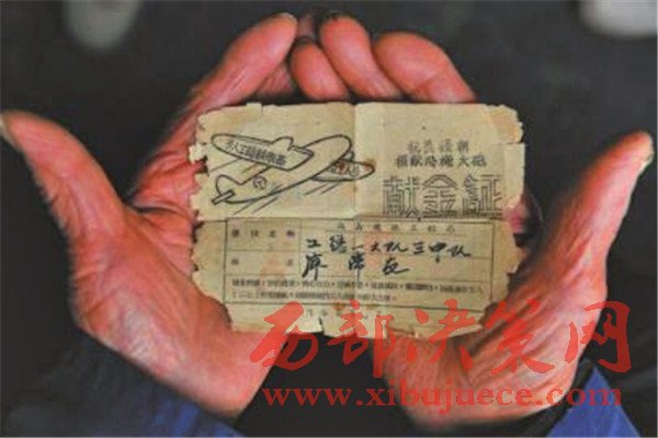 1951年廖弟友為抗美援朝捐獻的獻金證。