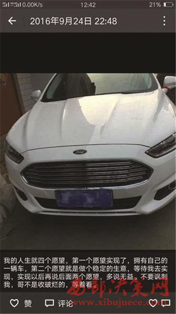 "我的人生就四個(gè)愿望,第一個(gè)愿望實(shí)現(xiàn)了,擁有自己的一輛車,第二個(gè)愿望就是做個(gè)穩(wěn)定的生意,等待我去實(shí)現(xiàn),實(shí)現(xiàn)以后再說后面的兩個(gè)愿望,多說無益。不要諷刺我,哥不是收破爛的,等著看。"