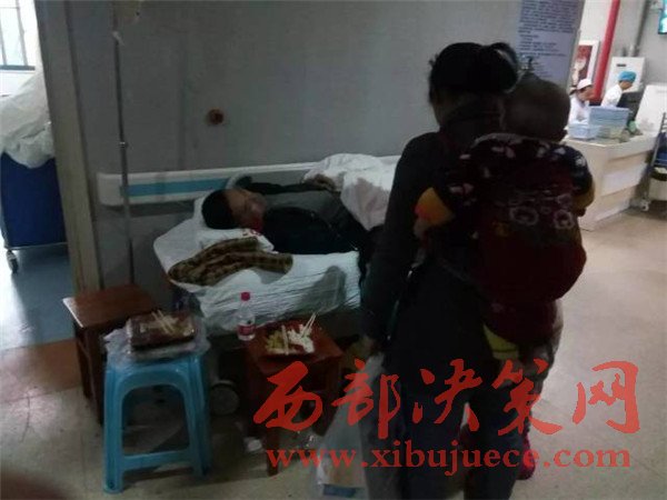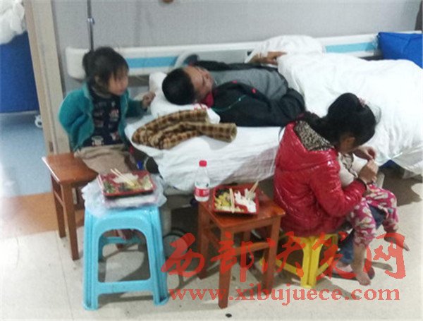 當(dāng)天下午,記者來(lái)到醫(yī)院,見(jiàn)到了王先生一家2個(gè)大人,4個(gè)孩子6口人。王先生躺在病床上,正吸著氧氣,三個(gè)孩子圍在王先生身邊,王先生妻子還背著尚在襁褓中的小女兒。