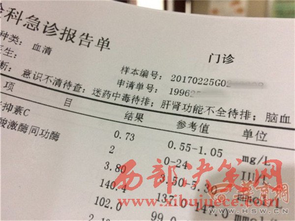 小美的檢查報(bào)告顯示,醫(yī)院方面臨床診斷為,意識(shí)不清待查、迷藥中毒待排、肝腎功能不全待排等。