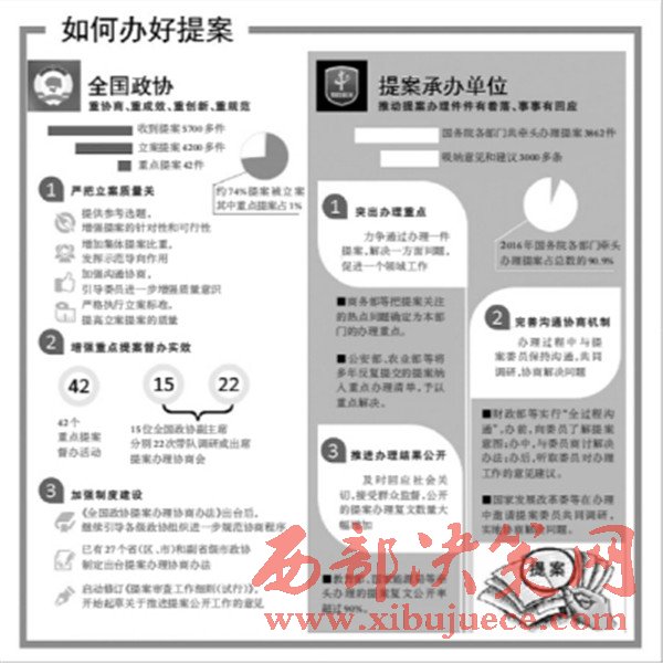 “提案凝聚著廣大政協(xié)委員的智慧心血,反映了社會(huì)各界群眾的愿望期待,辦理政協(xié)提案是吸納民意、汲取民智、接受人民監(jiān)督的重要途徑。”在日前舉行的全國(guó)政協(xié)提案工作情況通氣會(huì)上,國(guó)家發(fā)展改革委辦公廳副主任黃勇表示,政協(xié)委員通過(guò)提案對(duì)重大問(wèn)題積極建言獻(xiàn)策,提出很多富有建設(shè)性的建議,為更加科學(xué)地編制規(guī)劃、制定政策、推進(jìn)改革提供了新思路、新觀點(diǎn)。