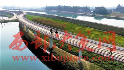 昨日上午,陽(yáng)光明媚,記者來到剛剛建成的三道堰徐堰河濕地公園,河水清澈見底,河面上微風(fēng)吹拂,楊柳依依,白鷺飛翔,漣漪浪翻?,F(xiàn)場(chǎng),一座飛架于河面兩側(cè)的“空中綠道”格外引人注目,三道堰鎮(zhèn)工作人員介紹,這座“空中綠道”南側(cè)全長(zhǎng)891米,北側(cè)全長(zhǎng)1300米,從空中俯瞰猶如雙龍飲水、長(zhǎng)虹臥波,取名為“雙虹橋”。該橋?qū)?.5米,可供兩人并肩騎行,這條風(fēng)景獨(dú)特的“空中綠道”才建成開放,就已經(jīng)吸引了四面八方的游客前來體驗(yàn)新鮮,跑步的、散步的、騎行的市民絡(luò)繹不絕。“我們昨天晚上到了這里,橋面沿線彩燈四射,像極了夜空中的彩虹,太美了。”來自天府安公騎游俱樂部的熊大爺說,他們?cè)?jì)劃是一早返回成都,但因?yàn)檫@里的景色太美,一早便騎行到這里希望見到白天的景色。熊大爺在橋上向下望去,一處處水鄉(xiāng)田園美景映入眼簾,人們的跑步聲、嘖嘖的贊美聲傳入耳畔……“這樣的景色使人格外地陶醉!”
