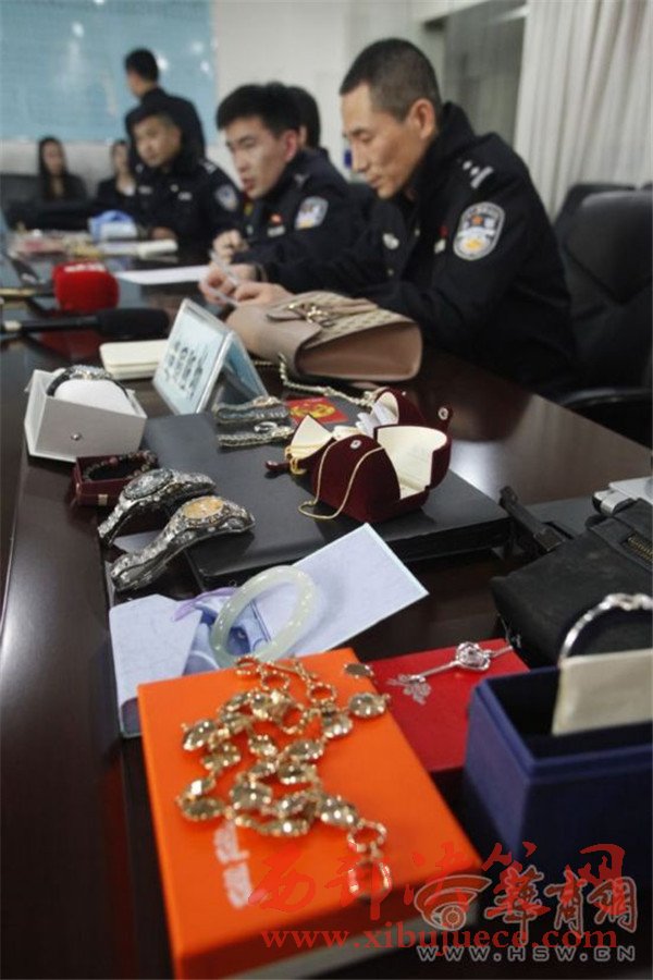 2017年3月2日,西安市公安局高新分局刑偵大隊(duì),民警正在介紹案情,追回的贓物放滿了桌子。