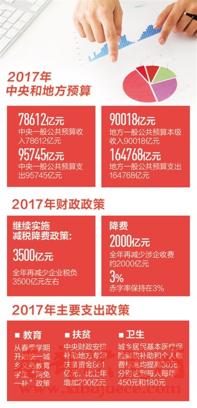 雖然赤字率與去年持平,但因為經(jīng)濟總量擴大,今年赤字為23800億元,比2016年增加2000億元。2000億元的新增財力,為加大重點領(lǐng)域支出創(chuàng)造了條件。