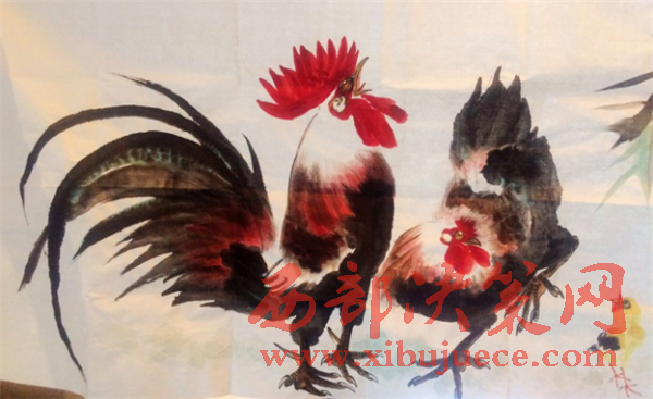 我畫的公雞被公雞鹐了:畫雞已經(jīng)成了他每天的必修課,2004年12月的一天,他下班回家吃過晚飯,到后院抱了一只公雞到屋里準(zhǔn)備觀察做畫,他把公雞放在地上,由于新環(huán)境公雞的頭上下左右窺視看看四周。突然,公雞先是跳到了床上,然后從床上跳到箱子上,從箱子上飛向掛在墻上以前畫的雄雞,鹐了畫上雄雞的脖子。它把我畫的公雞誤當(dāng)成同類了,它向同類發(fā)起了攻擊,卻沒有發(fā)現(xiàn)那是我畫的畫??磥砦耶嫷碾u同類已經(jīng)無法分辨出來了,我要發(fā)誓必須努力的繼續(xù)畫下去。他非常激動(dòng)的介紹到。