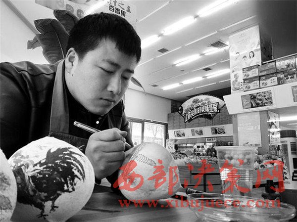 銀慧君算是找到了“用武之地”。他學(xué)的是國畫,賣的是水果,如何把興趣和工作結(jié)合起來,他想了一個辦法:在賣的椰子殼上作畫。