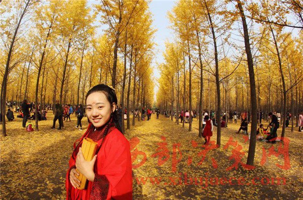 據(jù)了解,這片銀杏林早已經(jīng)是遠近聞名的“網(wǎng)紅”林,來漢陽陵參觀游覽的游客,必會到此一游,并留下倩影。有不少游客是專門帶著拍照道具來的,只為將這美景與自己定格在照片上。